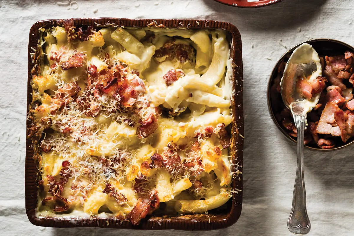 Get the recipe for classic extra creamy macaroni cheese with bacon here.