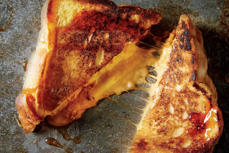 If cheese pulls are what you're looking for, you won't go wrong with a grilled cheese sandwich. You can stick to one type of cheese or mix it up with your favourite cheeses. This recipe also suggest drizzling maple syrup over the steaming hot sandwich for a sweet and cheesy flavour combo that's super addictive.