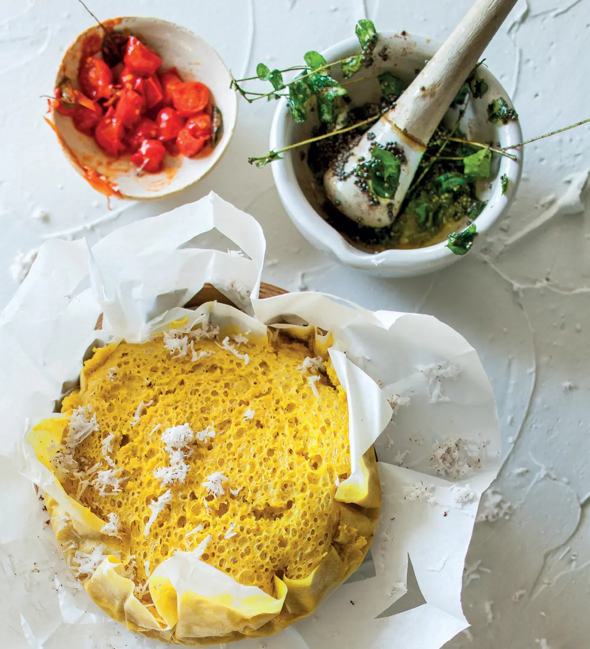 Yoghurt, chickpea flour and ENOs are the main ingredients in this steamed bread. Serve as a side for curry, or enjoy hot, with butter.