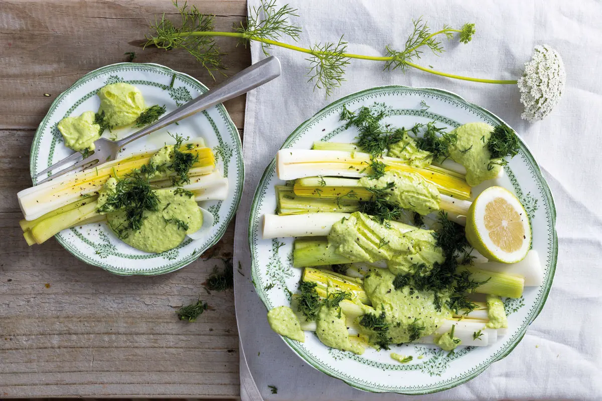 Find the recipe for poached leeks with creamy asparagus sauce here.
