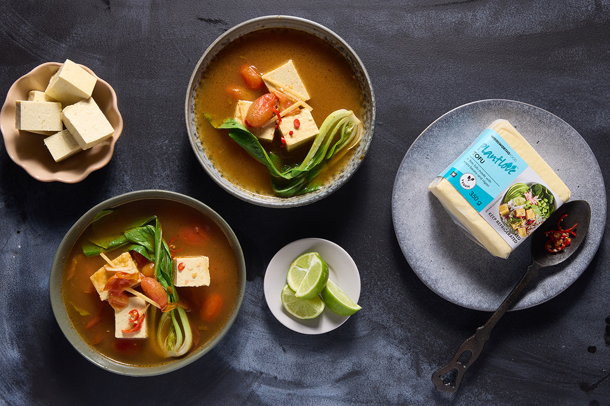 Bright, tangy and full of punchy flavour, this soup is the answer to winter weeknight dinners. The Woolworths PlantLove™ Tofu remains tender in the hot broth, while pak choi and tomatoes add freshness and a bite.