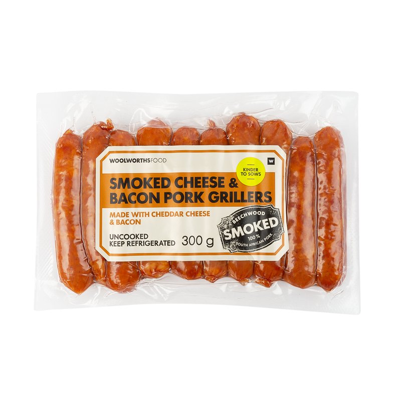 Woolworths smoked cheese-and-bacon pork grillers are loaded with flavour. Creamy cheese and bacon bits make them irresistible, and they're super versatile. Include them in your morning fry-up, add them to omelettes, scrambled eggs or a frittata for a breakfast feast, or give your kids' lunchboxes a protein boost. Whatever you choose, these pork grillers are guaranteed to be a hit with the whole family.
