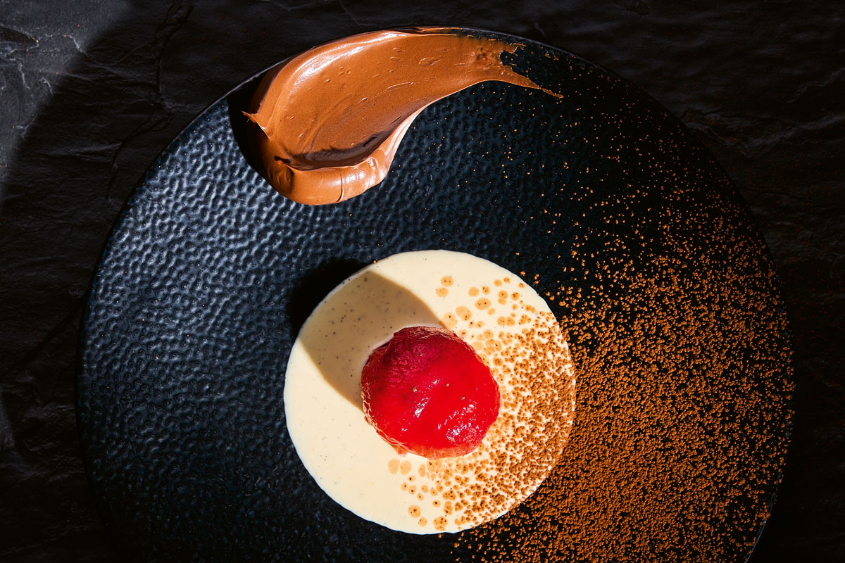 At first glance, chocolate and lemon seem like unlikely partners, but this tart reveals their secret harmony. Velvety chocolate meets the bright tang of salted lemon sabayon in perfect balance. It’s the kind of dessert that steals the spotlight at any spring table. Abigail serves this with candied prunes to make it extra fancy.