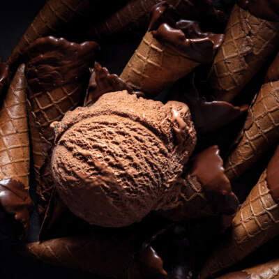 11. To assemble, spread a thin layer of chocolate ganache onto each tuile, then pipe on dots of cream cheese. Repeat the layers until you have used all the tuiles. Finish with ganache and cream cheese. Dust with cocoa powder and serve with the jellies.