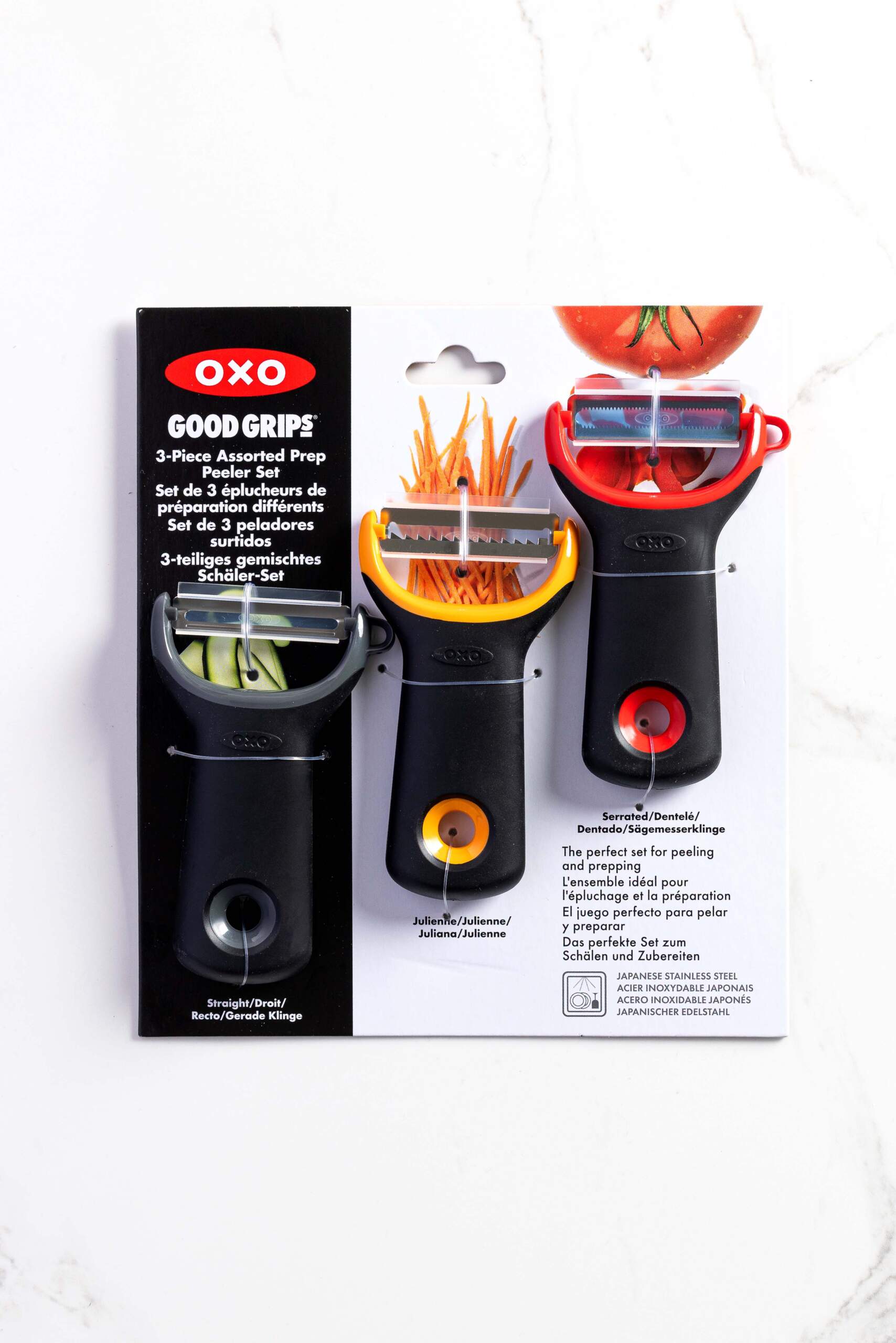 The perfect set for all your peeling and prepping needs (with straight, serrated and julienne peelers) but particularly in the preparation of sweet apples for the perfect pie.