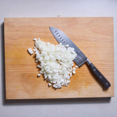 Finally, turn the onion and slice across the incisions you made, creating diced pieces.