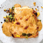 To assemble, toast the bread. Spread the leeks on the bread and top with some charred corn. Finish with a spoonful of Welsh rarebit sauce and place under the grill until golden and bubbling.