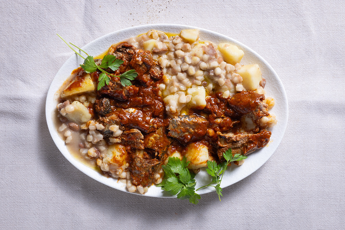 Bonnie’s tomatoey pilchards with samp