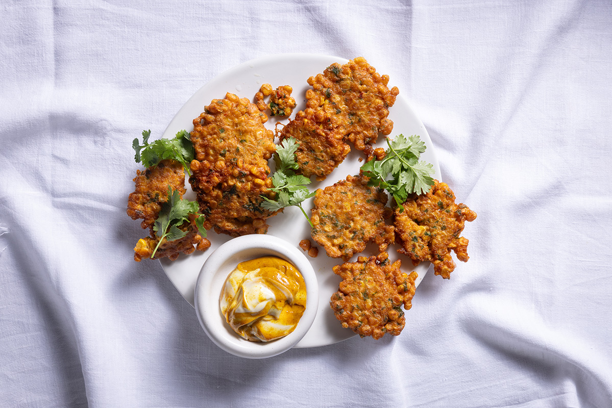Sweetcorn chilli pakoras with curried mayonnaise