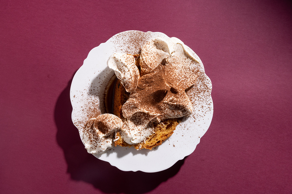 Pandoro is also made with dough enriched with butter and eggs, but it skips the fruit entirely. Baked in a tall, star-shaped tin, it’s pale, buttery and delicate, finished simply with icing sugar. Its simplicity allows it to be a blank canvas for cream, fresh berries, espresso or other accompaniments.