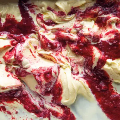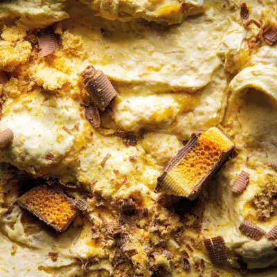 8. If you have an ice-cream machine, churn the mixture and freeze it until set. If you don’t have an ice-cream machine, pour the mixture into a freezerproof dish and place it in the freezer. Whisk the mixture every 20 minutes over a 3-hour period, then allow to freeze and set completely.