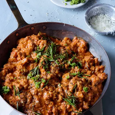 1 hour1. Stir-fry the mince in a 24 cm heavy-based pan until it changes colour. Remove the mince using a slotted spoon and set aside. Pour off the fat.
