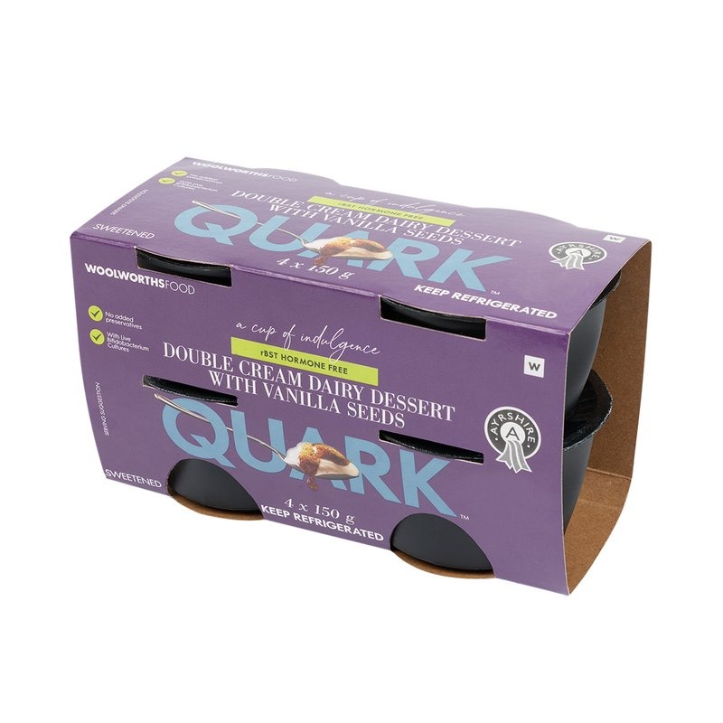 Quark, Woolworths’ new dairy dessert, is like a super creamy cross between yoghurt and cream cheese. It’s smooth, versatile, packed with live cultures and even comes in a few flavours: plain, strawberry and vanilla. Use it in desserts, smoothies, sauces… or just enjoy it straight from the tub. It’s preservative-free, RBST hormone-free, and contains live bifidobacterium cultures.
