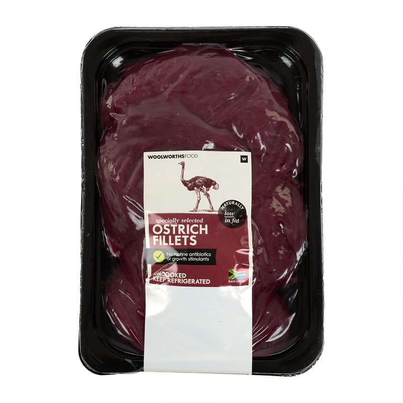 2 Heat a pan until very hot. Sear the ostrich for 3–5 minutes on each side, or until cooked to your preference. Rest for a few minutes, then slice thinly.