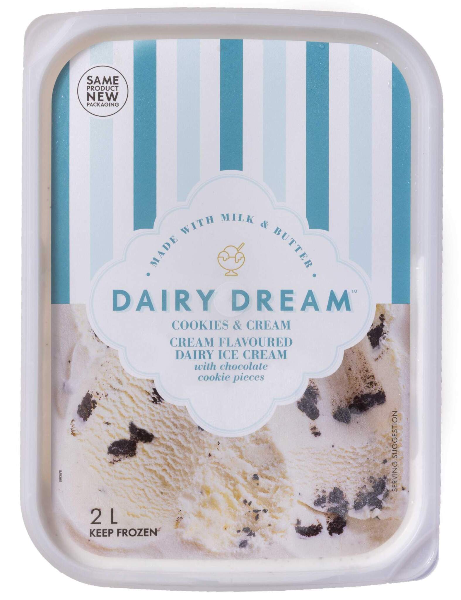 Woolworths Dairy Dream flavoured dairy ice cream is the ultimate indulgence. Whether you choose tin roof, cookies and cream, stracciatella, vanilla or triple caramel, you can be assured they contain the best quality ingredients. Best of all? You can expect the same recipe – real butter, full-cream milk, and sustainably sourced cocoa (in the tin roof and stracciatella) – just in brand-new packaging. The pastel colours of the new packaging enhance the creaminess and flavour experience you'll find inside, every time you open a tub of Woolworths Dairy Dream flavoured dairy ice cream.