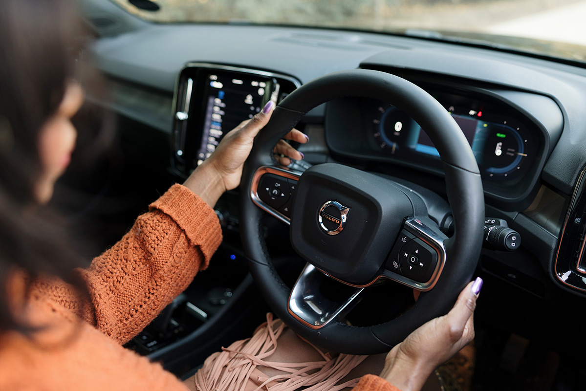 From its leather-free, sustainable interior to its calm, clutter-free cabin and panoramic sunroof, the XC40 Recharge complements Neo’s thoughtful way of living. And with built-in Google services, including voice-activated Google Assistant, she can call a friend, cue a playlist, or set her next stop, all without taking her eyes off the road.