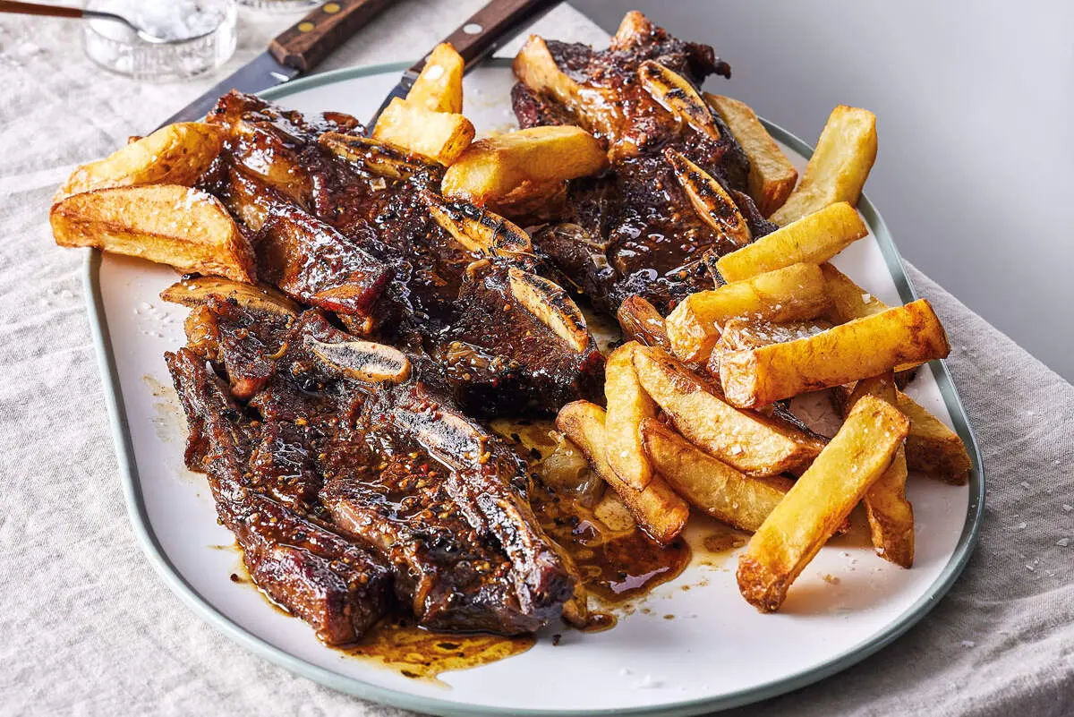 Short rib rashers are a budget-friendly alternative if you love short ribs but don't always have the means to splurge. Season simply with steak rub and slow-cook in beef stock and herbs in the oven. This recipe serves the rashers with slap chips, but any of your favourite sides and carbs will hit the spot.