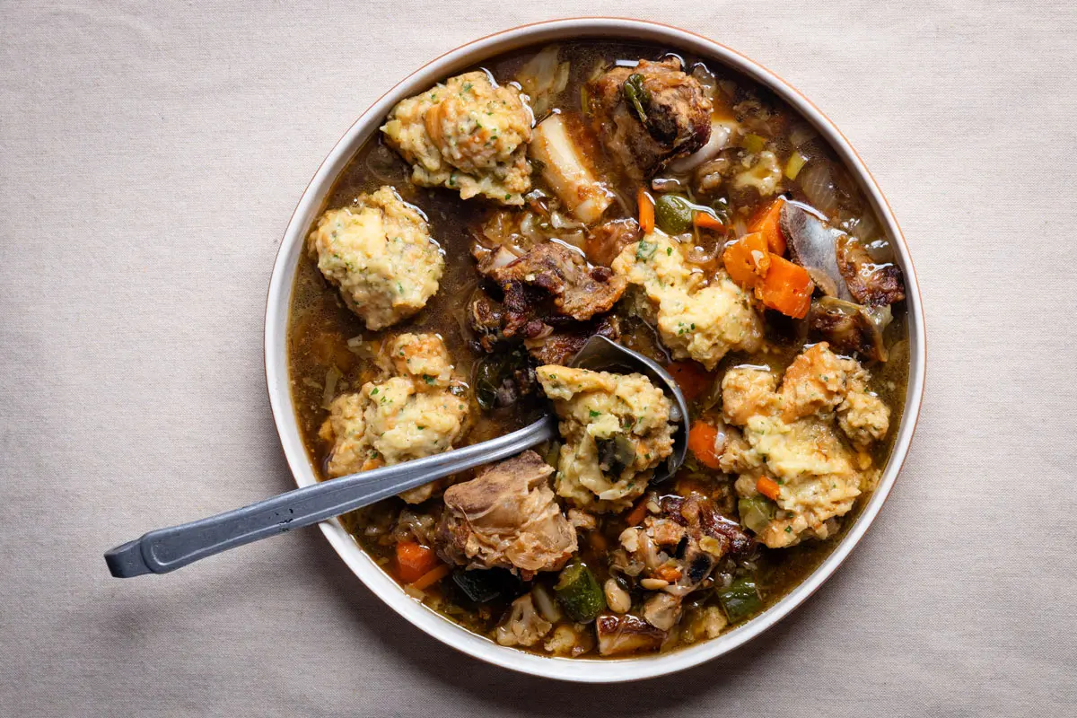 Get the recipe for lamb bone and vegetable soup with bread dumplings here